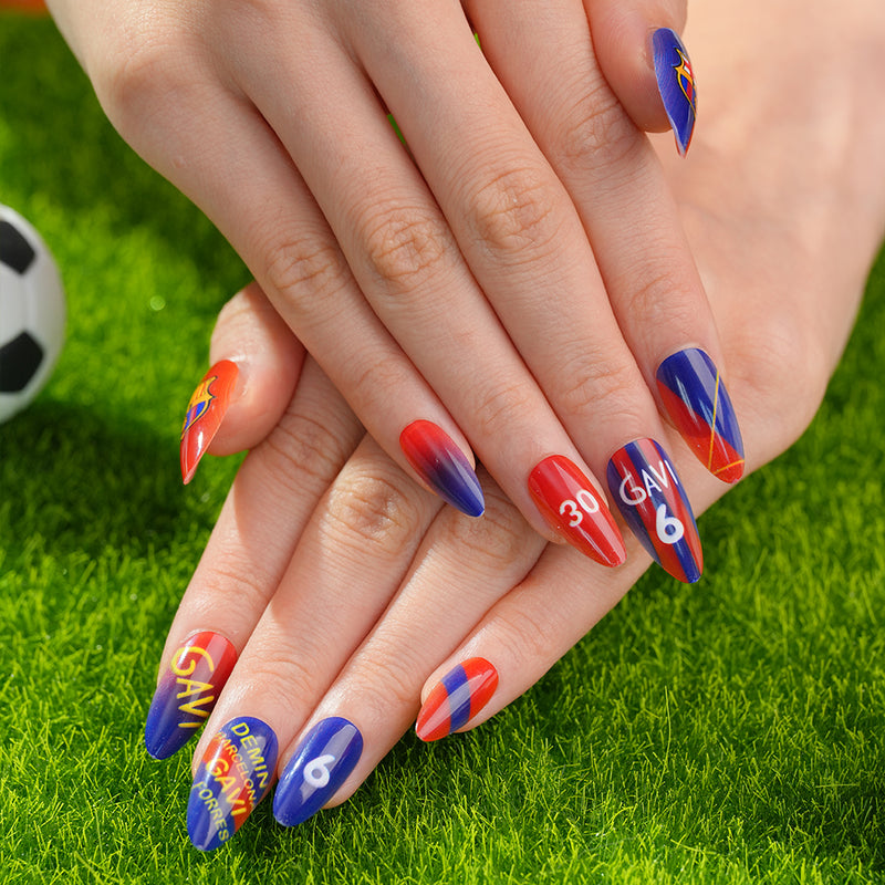 Uñas Postizas Estilo FC Barcelona | Diseño de Gavi #6 Set de 24 piezas | Kit de Manicura para Fans Blaugranas